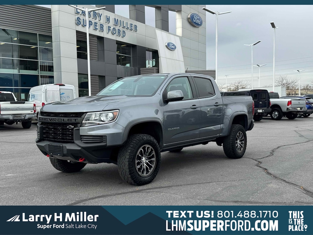 CARFAX One-Owner. Clean CARFAX. Satin Steel Metallic 2022 Chevrolet Colorado ZR2 4WD 8-Speed Automatic V6 *********FOR MORE INFORMATION TEXT ME @ 801-829-9323**********, ********INVENTORY REDUCTION EVENT*********, *******SALE **********1340 SOUTH 500 WEST SALT LAKE CITY UT, 4WD, Black Rear Bumpers, Black Spray-On Bedliner w/Chevrolet Logo, Driver-Selectable Full-Locking Front Differential, Driver-Selectable Full-Locking Rear Differential, Heavy-Duty Trailering Package, Hitch Guidance, Integrated Trailer Brake Controller, Preferred Equipment Group 4ZR, Tow/Haul Mode, ZR2 Off-Road Package.