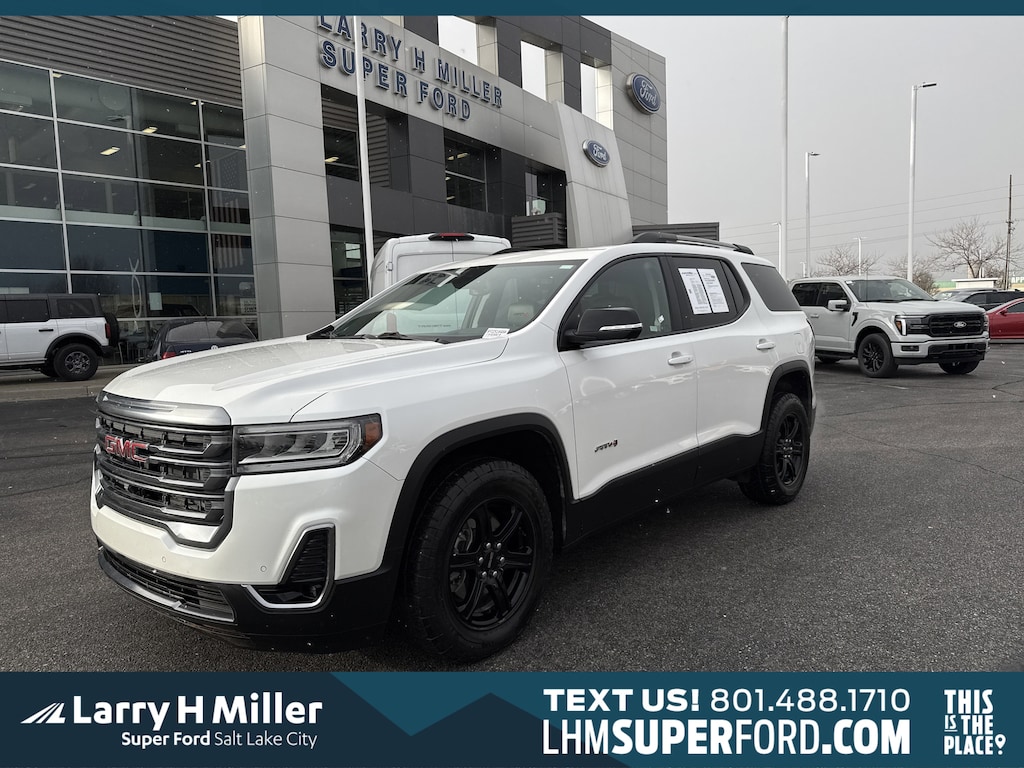 Certified. CARFAX One-Owner. Clean CARFAX. White Frost Tricoat 2023 GMC Acadia AT4 AWD 9-Speed Automatic 3.6L V6 SIDI *********FOR MORE INFORMATION TEXT ME @ 801-829-9323**********, ********INVENTORY REDUCTION EVENT*********, *******SALE **********1340 SOUTH 500 WEST SALT LAKE CITY UT, AWD, Jet Black Leather, 8-Way Power Passenger Seat Adjuster, 8 Multi-Color Enhanced Dr Instrument Info Display, HD Surround Vision, Heads-Up Display, Heated & Ventilated Driver & Front Passenger Seats, Heated Rear Outboard Seating Positions, Heated Steering Wheel, Luxury Package, Memory Package, Navigation System, Power Passenger Lumbar Control Seat Adjuster, Power Tilt & Telescopic Steering Column, Power-Adjustable Body-Color Outside Heated Mirrors, Preferred Equipment Group 4SB, Preferred Package, Technology Package.